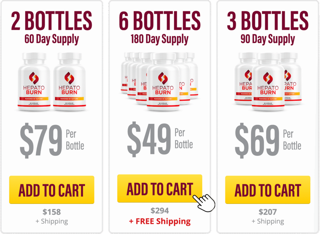 If you’re over 35 years old, or carry excess weight, we recommend you take HepatoBurn for at least three to six months so it has enough time to cleanse your entire body and have you reach your desired weight and lock it in for years into the future. If you choose to take advantage of the six bottle ultimate discount package, it comes with free shipping. Remember stock is running out fast. More reason to pick up three or six bottle packages before the price goes up or we sell out completely.